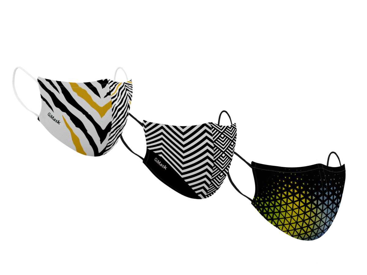 Le maschere protettive GiMask sono realizzate con tre strati di tessuto poliestere lavabile, stampate con inchiostro ad acqua. Un prodotto estremamente confortevole e traspirante adatto ad essere indossato in maniera continuativa.